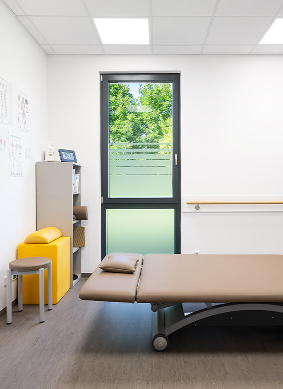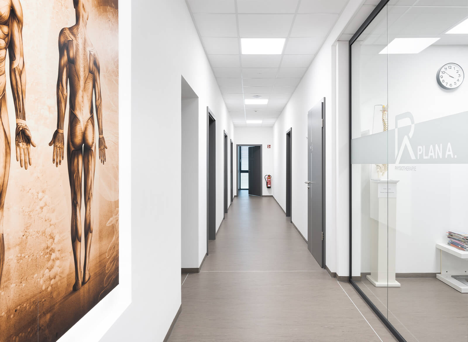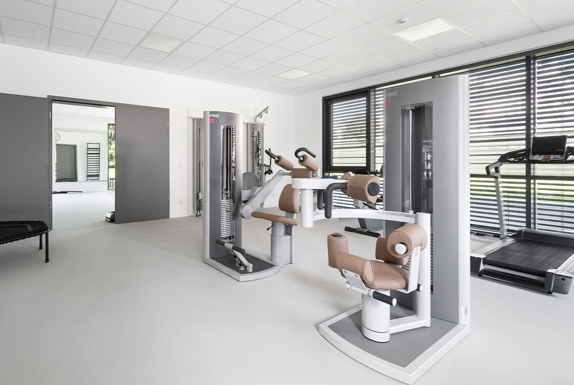 Im Inneren wurde Wert auf klare Strukturen, helle Räume und funktionale Abläufe gelegt. Großzügige Trainingsbereiche mit modernen Geräten, einladende Therapiezonen sowie praxisgerechte Nebenräume wie Umkleiden und Sanitärbereiche bieten ideale Bedingungen für hochwertige Physiotherapie und medizinische Betreuung. Die klar gegliederten Raumfolgen unterstützen effiziente Workflows und erleichtern die Orientierung für Besucher.