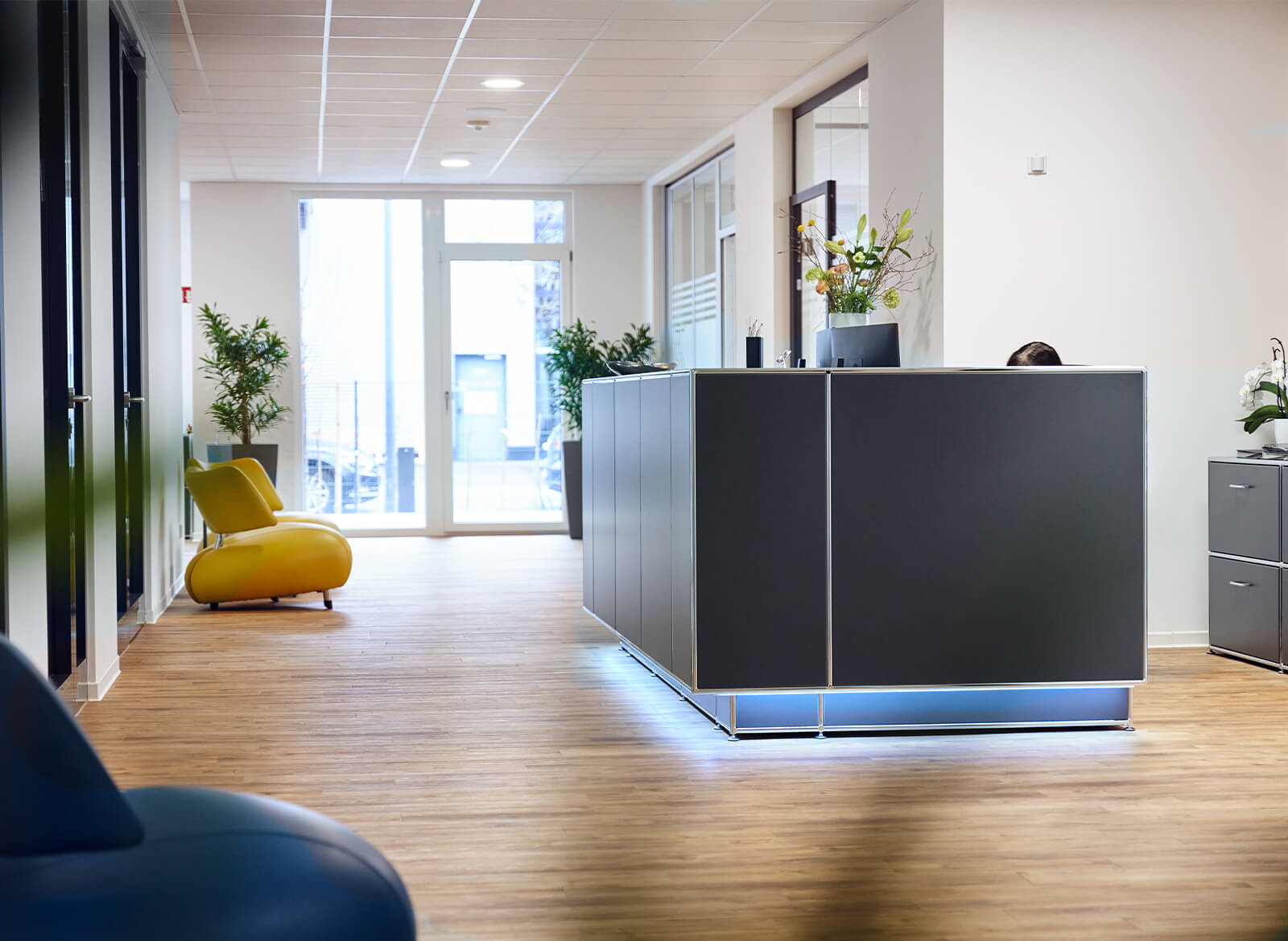 Mit rund 760 m² Bruttogeschossfläche bietet das Gebäude optimale Voraussetzungen für effiziente Arbeitsabläufe. Die Energieversorgung über eine Luft-Wasser-Wärmepumpe sowie die Ausführung im KfW-40-Standard unterstreichen den nachhaltigen Anspruch. Auf dem Flachdach erzeugt eine groß dimensionierte Photovoltaikanlage im Jahresverlauf mehr Strom, als am Standort verbraucht wird. Zukunftsorientiert stehen zudem vier Ladepunkte für Elektrofahrzeuge zur Verfügung.